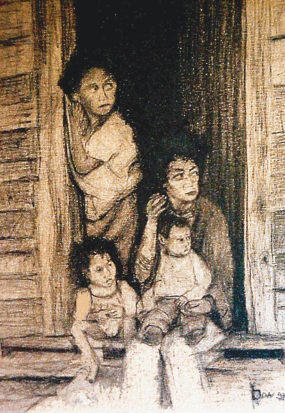 Fettkreide auf Spanplatte, mit Rahmen Fichte 50 x 62 cm